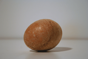 Ari Richter, The Cheekbiter III, 2011, Artist’s cheek skin on egg shell, 2 X 1.5 X 1.5 inches.